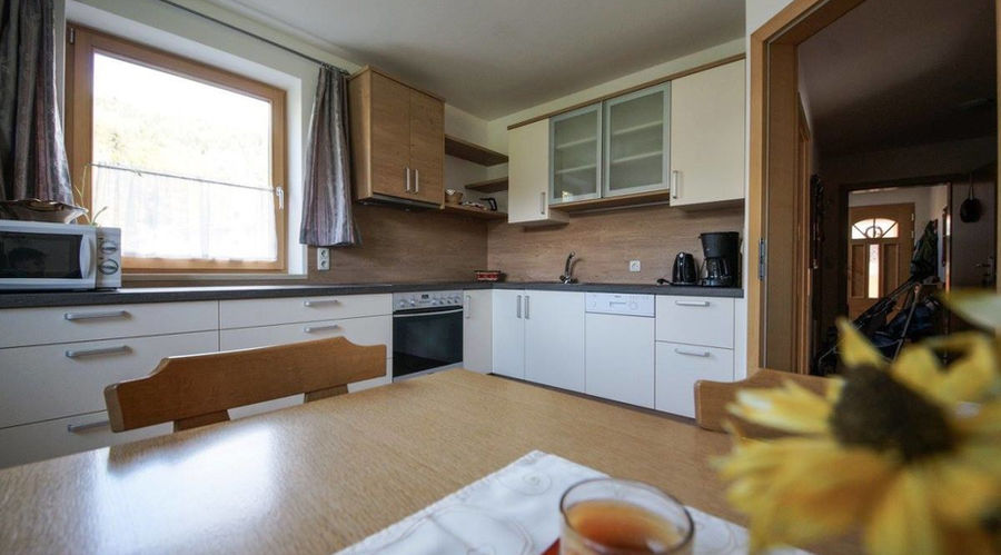 Die gemütliche Ferienwohnung für 2-6 Personen (70m2) liegt im Erdgeschoß und besteht aus einer komplett ausgestatteten neuen Küche, Wohnzimmer mit ausziehbarer Couch für 2 Personen, Kachelofen, Doppelzimmer mit Doppelbett (Zusatzbett möglich), Zimmer mit neuem Etagenbett, Bad, WC getrennt; großer Vorraum, kleine südseitige Terrasse, Kabel TV, WLAN, 1 Parkplatz.